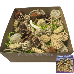 Engage your feathered family member with the Boredom Busters Foraging Box. This large box is filled with natural toy parts, providing hours of beak and talon fun for larger birds. Plus, it comes with a sample of Golden Gourmet Trail Mix to sprinkle in the box for added enrichment. Perfect for medium to large birds, from Greys and Eclectus to Macaws and Cockatoos.