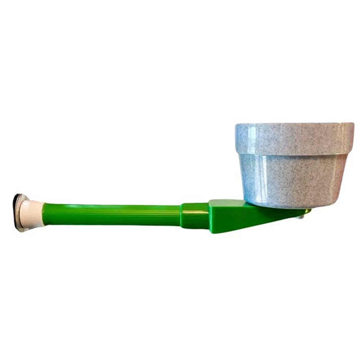 This perch, with an easy on and off cup is designed to reduce the mess on your floor. This is easily accomplished by centrally locating the cup in your bird's cage. You will be happily surprised when you see the mess is contained in the cage, NOT on your floor! This perch is designed to be comfortable by providing a secure non-slip gripping surface. The non porous surface is easy to clean.