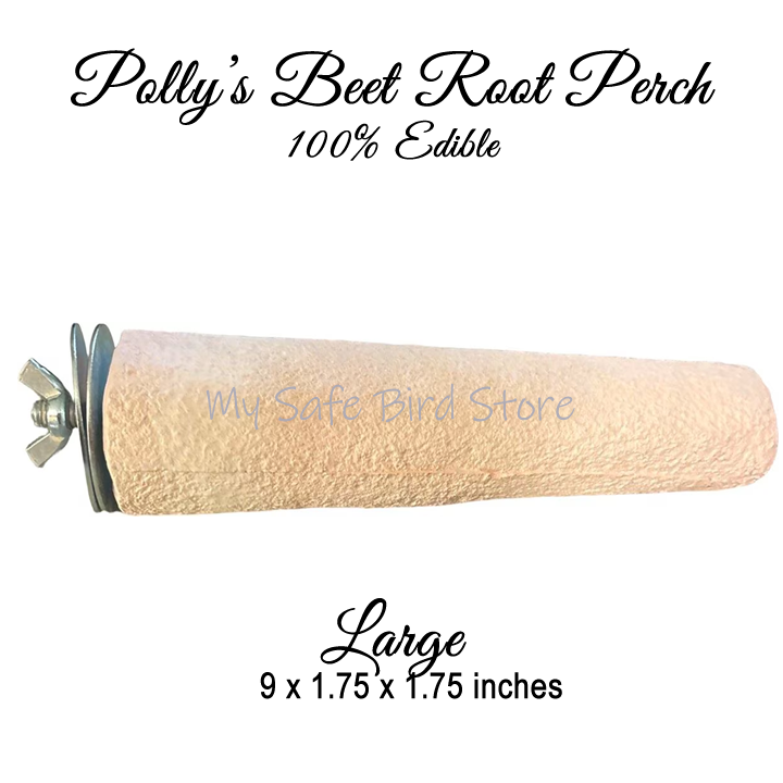Polly's Beet Root Perch Large is a handcrafted, edible perch made from bird-safe beet root powder, free from artificial colors, flavors, and preservatives. Packed with essential nutrients and antioxidants, this perch supports your bird’s bone health and eggshell formation by providing vital calcium. The natural beet ingredients may help lower blood pressure, improve circulation, and reduce inflammation. Its textured surface promotes a secure grip while gently trimming nails and beak, enhancing your bird’s comfort and wellbeing. Made in Bonaire, Georgia, this perch is a healthy, practical addition to your bird’s environment.