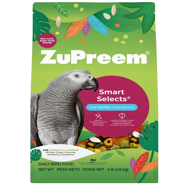 Smart Selectsâ?¢ is a healthy and balanced alternative to other daily bird food blends. This delectable combination of grains, seeds and fruit is full of delicious flavors your bird will love. Smart Selectsâ?¢ Premium Daily Nutrition for Parrots & Conures provides healthy and balanced food for Conures, Amazons, African greys, Pionus, Caiques, Senegals and other medium to large birds. My Safe Bird Store recommends this as a treat to supplement a pelleted and fresh food diet.
